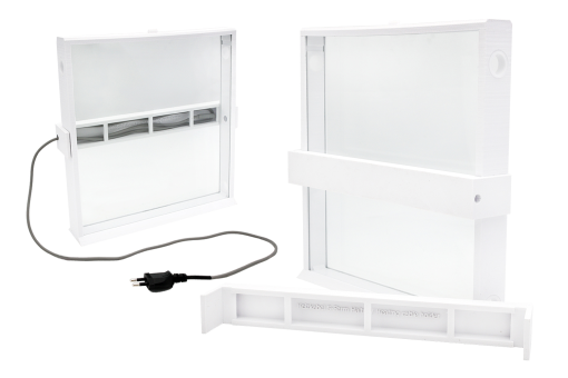- **Einfache Handhabung:** Die in Schienen befestigten und somit leicht austauschbaren Scheiben (27,2 cm x 27,2 cm x 0,4 cm) machen die Pflege und Anpassung zum Kinderspiel.