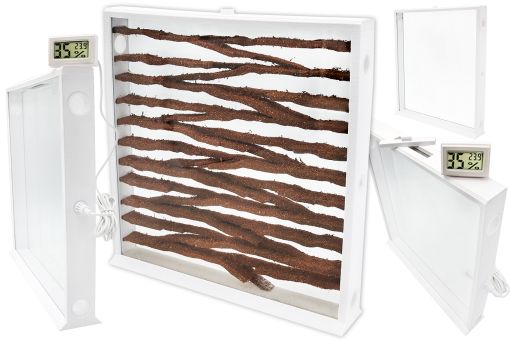 Dank des integrierten Heizkabels wächst Ihre Kolonie schneller heran, da die Temperatur im Nest - auch bei heimischen Arten - eine entscheidende Rolle spielt. Das innovative Bewässerungssystem sorgt dafür, dass Sie die Farm von oben leicht mit Wasser versorgen können. Unsere MyAnts Ameisenfarm ist zudem mit zwei hochwertigen Glasscheiben ausgestattet, die für eine klare Sicht sorgen. Die Farm besteht jedoch nicht vollständig aus Glas, um eine bessere Luftzirkulation zu gewährleisten. Jedes Detail wurde sorgfältig durchdacht.